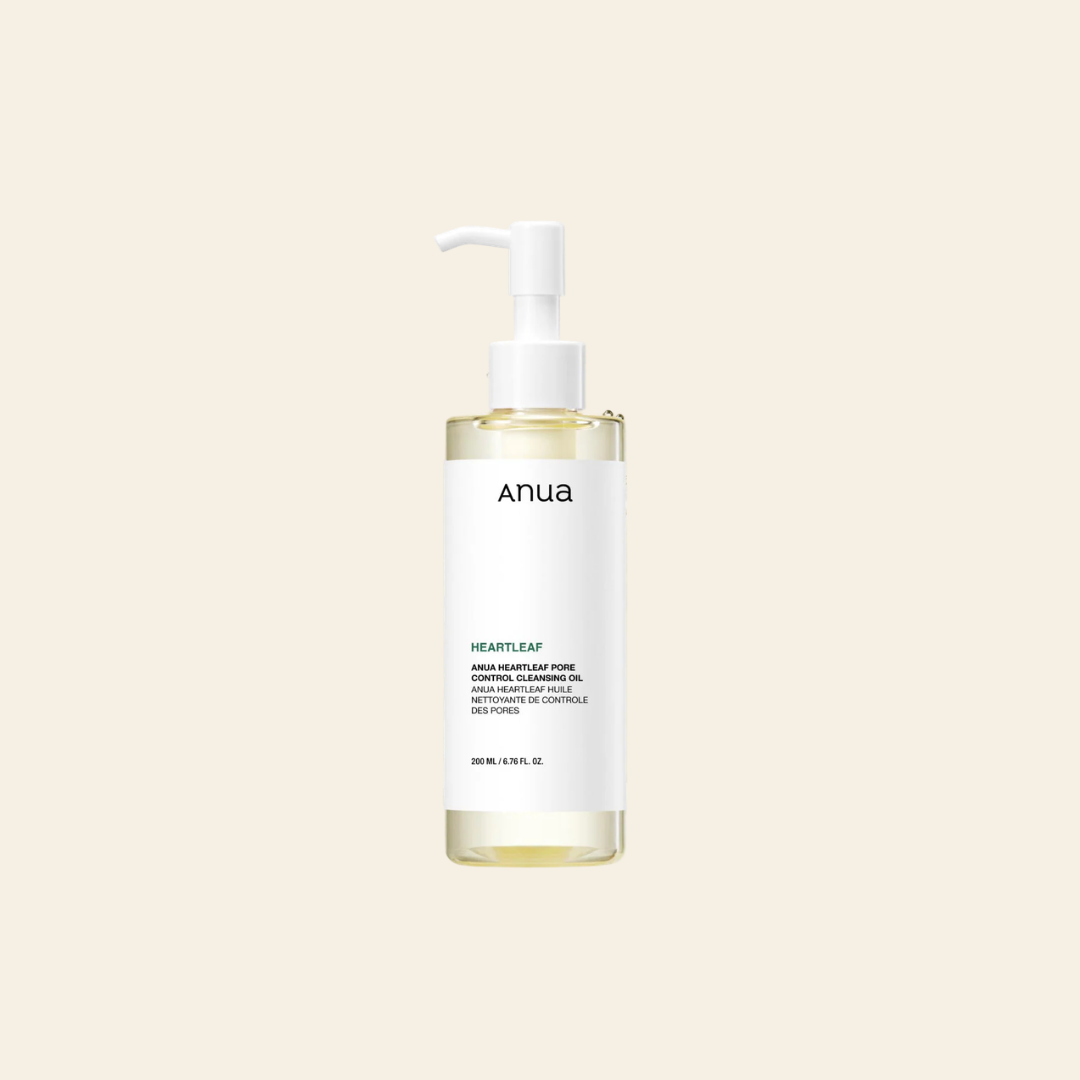 O Heartleaf Pore Control Cleansing Oil da ANUA é um óleo de limpeza leve e refrescante que remove maquilhagem, impurezas e excesso de oleosidade sem obstruir os poros.