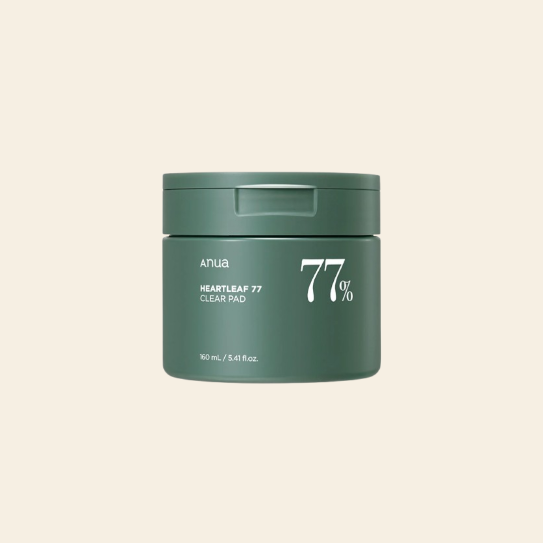Os Anua Heartleaf 77% Toner Pads são discos multifuncionais que acalmam, equilibram e refinam a pele. Com 77% de extrato de Houttuynia Cordata, ajudam a reduzir irritações e controlar a oleosidade sem ressecar.